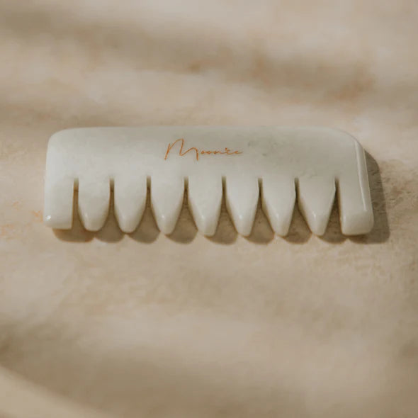Een hoofdhuidmassage met de Moonie witte Jade Gua Sha massage kam brengt ontspanning en rust in je hoofd. De doorbloeding wordt gestimuleerd waardoor spierspanning rond het hoofd en de nek afneemt.
